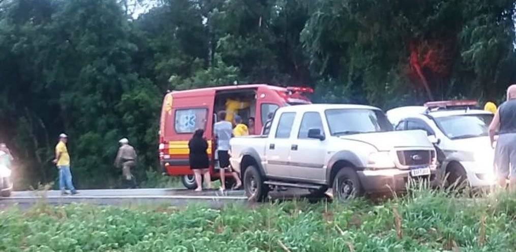 Uma colisão entre uma camionete Ford/Ranger e um veículo Renault/Logan da Polícia Militar foi registrada no final da tarde desta segunda-feira, 28, na rodovia SC 163, na altura da Linha São Vendelino, interior de Iporã do Oeste.