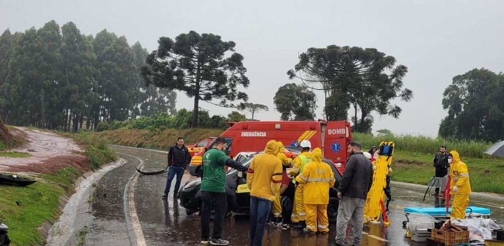O Corpo de Bombeiros de Campo Erê, fez o resgate da mulher. No Celta um homem teve escoriações e foi conduzido com a outra vítima para atendimento médico. Chovia bastante no momento do acidente, as causas serão apuradas pela Polícia Rodoviária.
