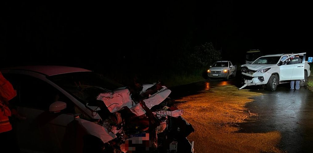 Uma colisão frontal entre uma caminhoneta e um automóvel Ford Focus deixou duas pessoas feridas na noite deste domingo, 19, na SC 496, no município de Belmonte.