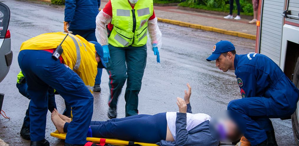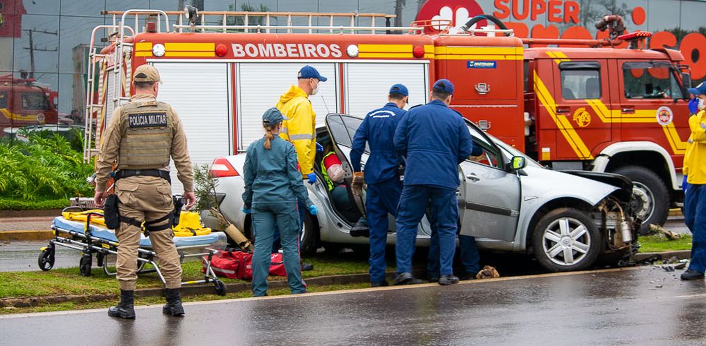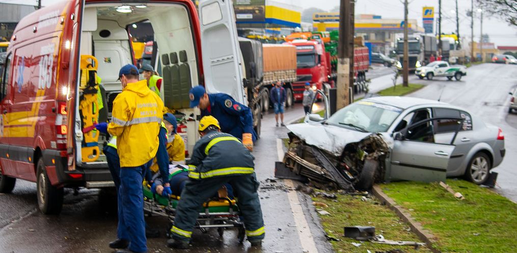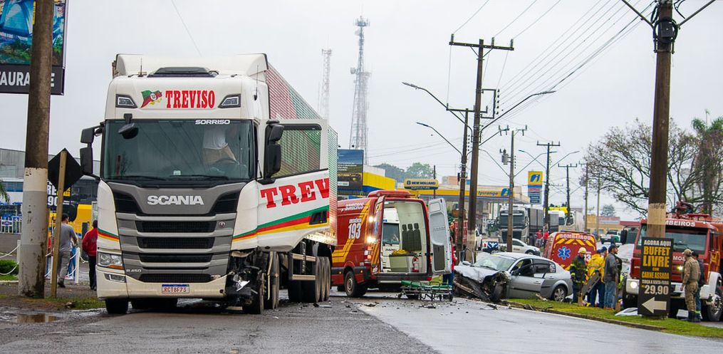 Uma colisão frontal entre uma carreta e um carro deixou o motorista e a passageira do veículo feridos, na Avenida Willy Barth em São Miguel do Oeste, na tarde desta quarta-feira, 17.