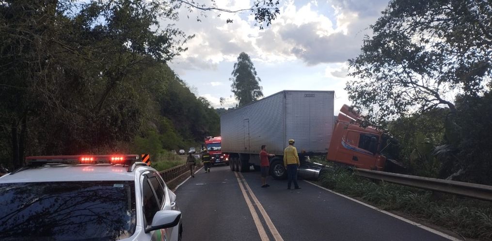O condutor do caminhão não se feriu. A Polícia Militar prestou apoio na ocorrência.