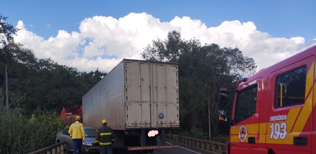 Uma colisão frontal entre um Honda Civic e uma carreta deixou uma pessoa ferida por volta das 16h40 desse domingo, 23, na ponte sobre o Rio Sargento, SC 161, trecho entre Romelândia e Flor do Sertão.