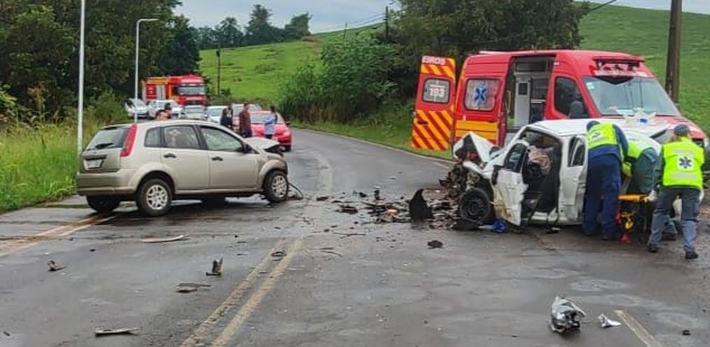 Uma colisão frontal envolvendo dois veículos deixou uma vítima fatal e outras quatro pessoas feridas na tarde deste sábado, 24, por volta das 12h50, na rodovia Claumir Luiz Trevisol, distrito de Santa Lúcia, interior de Palmitos.