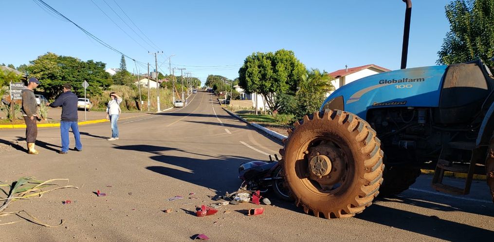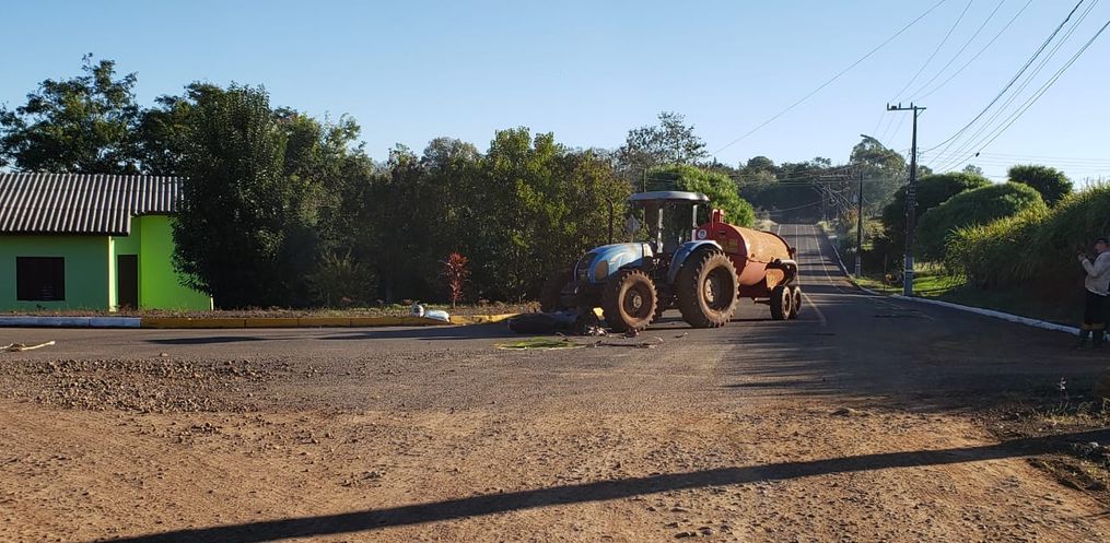 Conforme informações obtidas pela reportagem da Rádio Oeste no local do acidente, uma moto Honda Biz 100, emplacada em Iporã do Oeste, trafegava no sentido a rodovia quando colidiu frontalmente contra um trator Landini, que estava acoplado com um distribuidor de esterco líquido e fazia o sentido contrário.