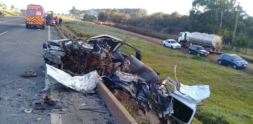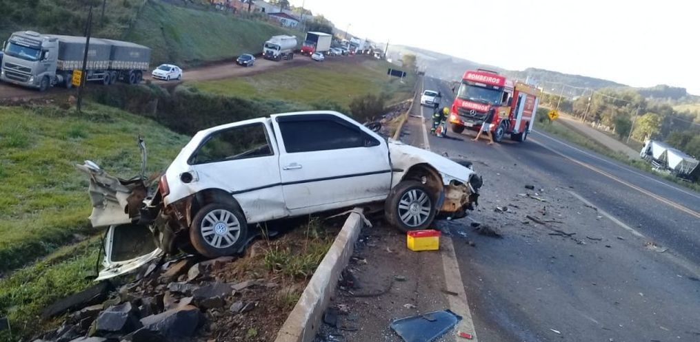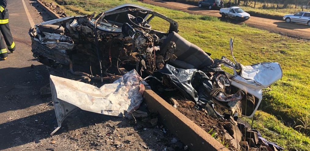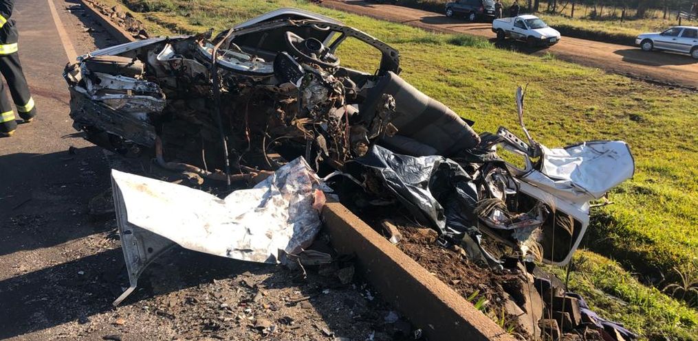 A colisão ocorreu envolvendo um Gol de Maringá e uma carreta com placas de São João do Oeste. Os dois veículos colidiram frontalmente, deixando o carro completamente destruído.