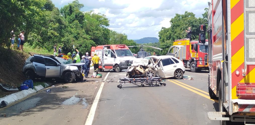 A colisão frontal envolveu dois veículos, um Volkswagen Gol e uma Renault Duster. Na Renault Duster estavam quatro ocupantes. O condutor, um homem de 59 anos, ficou preso às ferragens. As outras três ocupantes, todas mulheres adultas, foram encontradas fora do veículo, deitadas às margens da rodovia. Duas delas foram encaminhadas inicialmente ao Hospital de Nova Erechim e, posteriormente, transferidas ao Hospital Regional do Oeste. A terceira vítima foi conduzida diretamente ao HRO.