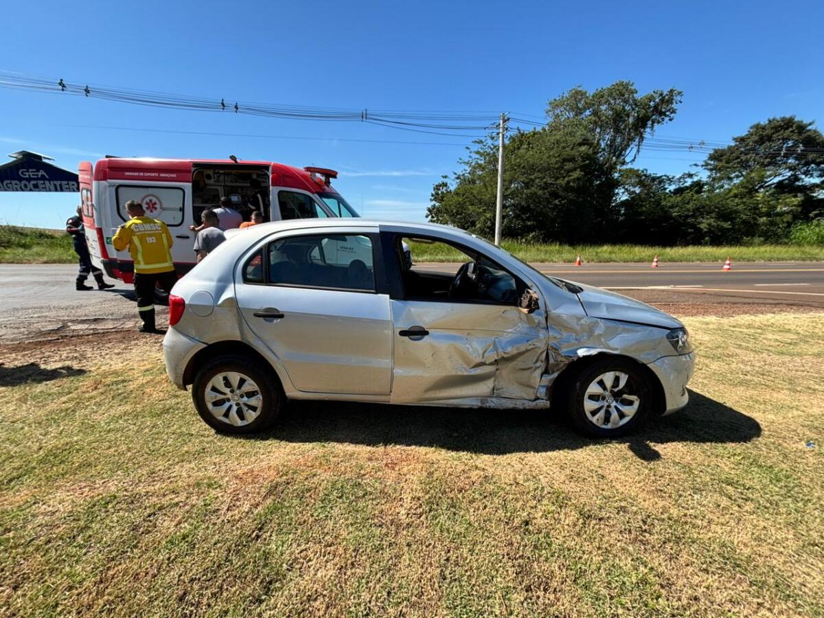 A colisão envolveu dois veículos, um GM Astra e um VW Gol. No Astra estavam um casal, que não sofreu ferimentos. Já no Gol também havia um casal; a passageira teve ferimentos generalizados e foi socorrida pelo SAMU, sendo encaminhada ao Hospital Regional.