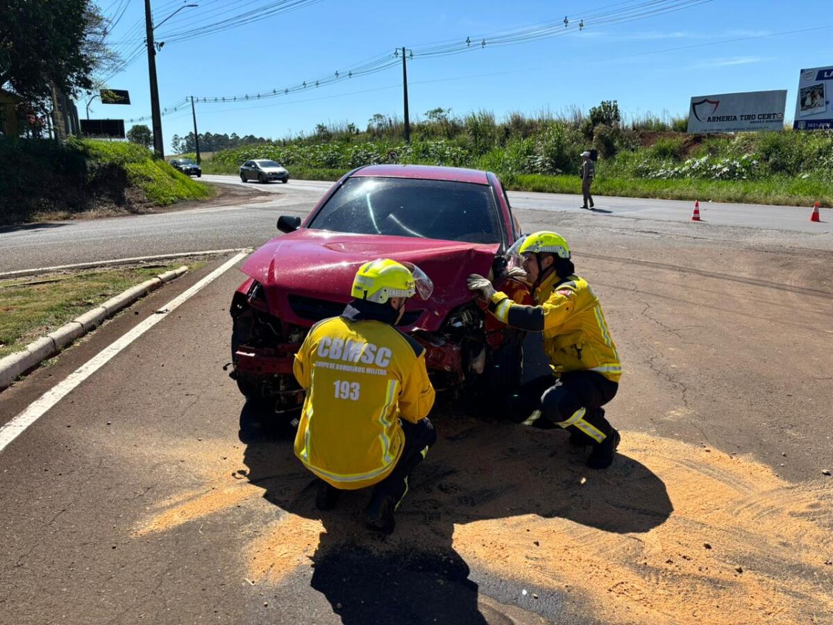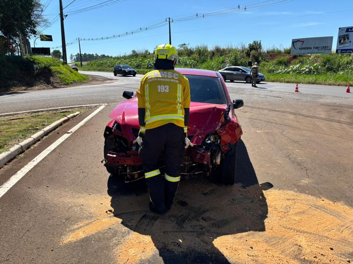 Colisão lateral deixa uma mulher ferida na SC-163, em SMOeste