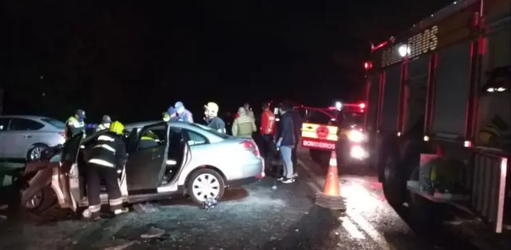 Quando os bombeiros chegaram ao local, encontraram um Citroen C4 na pista e um segundo Citroen C4, às margens da rodovia, que foi arremessado com o impacto da batida.
