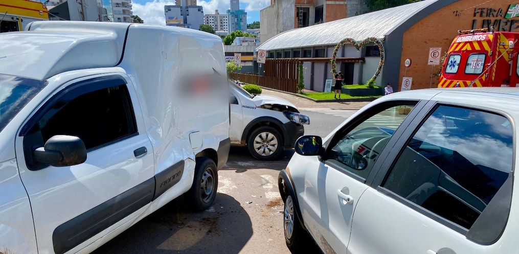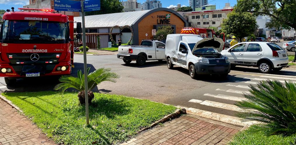 Três veículos se envolveram em um acidente no cruzamento das ruas Marcílio Dias e Almirante Barroso, no centro de São Miguel do Oeste, nesta segunda-feira, 28, por volta das 10h10.