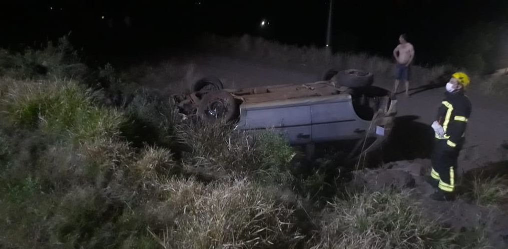 No local foi constatado um abalroamento lateral de dois veículos Gol. Houve saída de pista e capotamento de um dos carros.