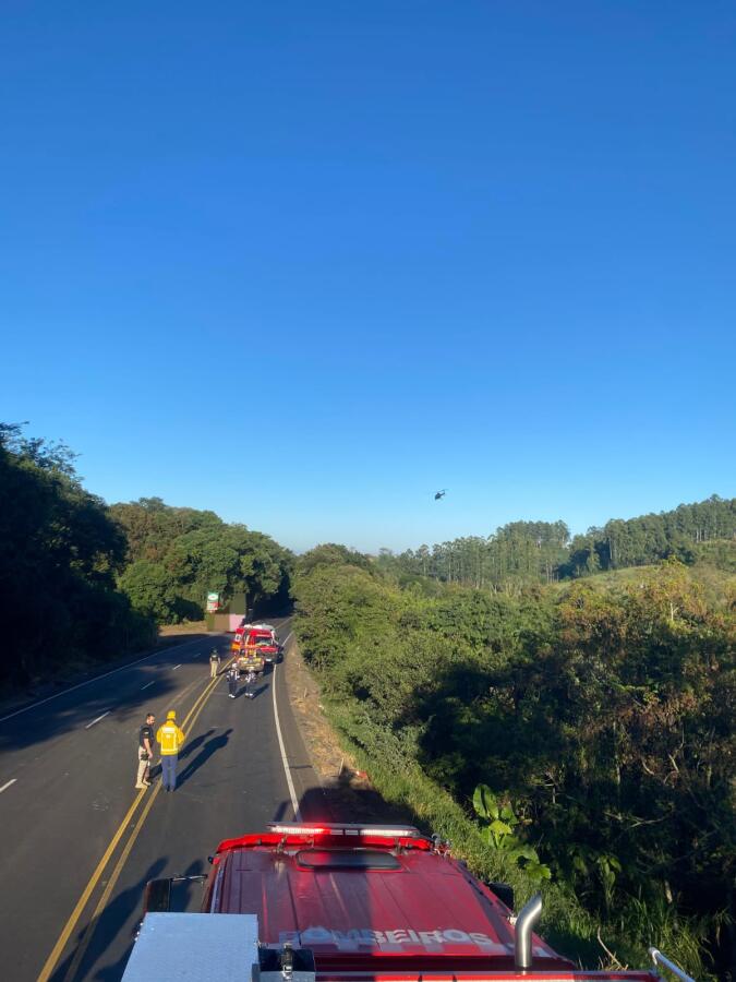 Já o segundo veículo saiu da pista e caiu em uma ribanceira de cerca de 10 metros, colidindo contra pedras e árvores. No interior, uma mulher de aproximadamente 30 anos ficou presa às ferragens. Ela estava consciente, porém apresentava dores na região pélvica, lombar e abdominal, além de suspeitas de fraturas e lesões na coluna.