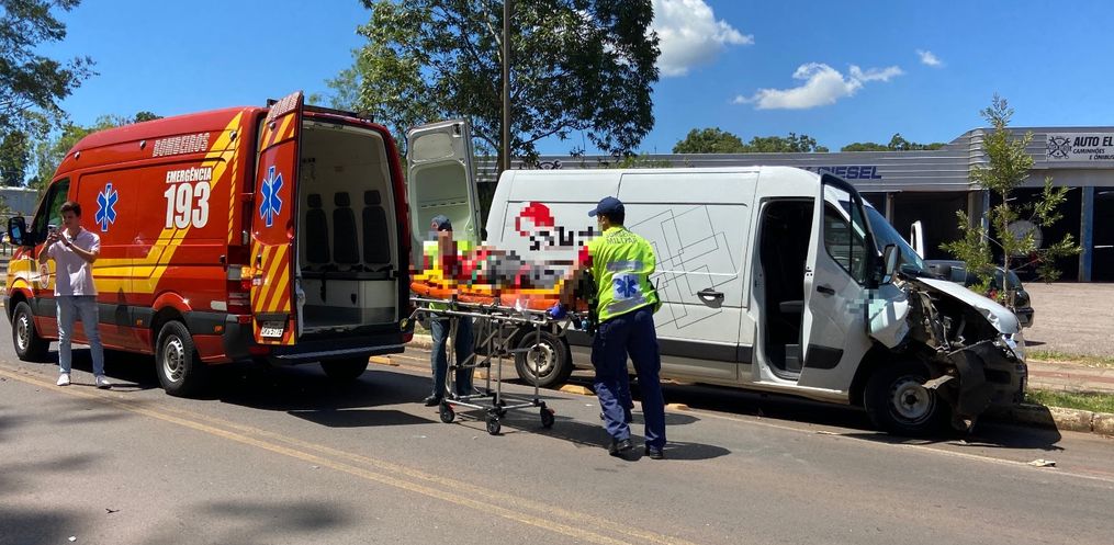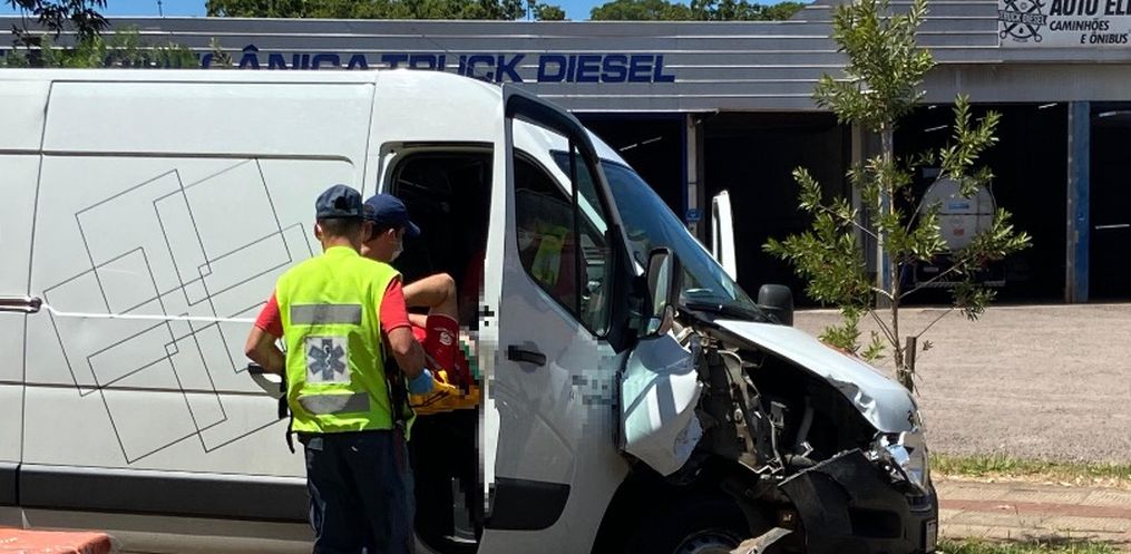 O Corpo de Bombeiros foi acionado e socorreu o condutor da Van, consciente e orientado, relatando fortes dores no peito. Ele foi imobilizado e encaminhado para atendimento médico.