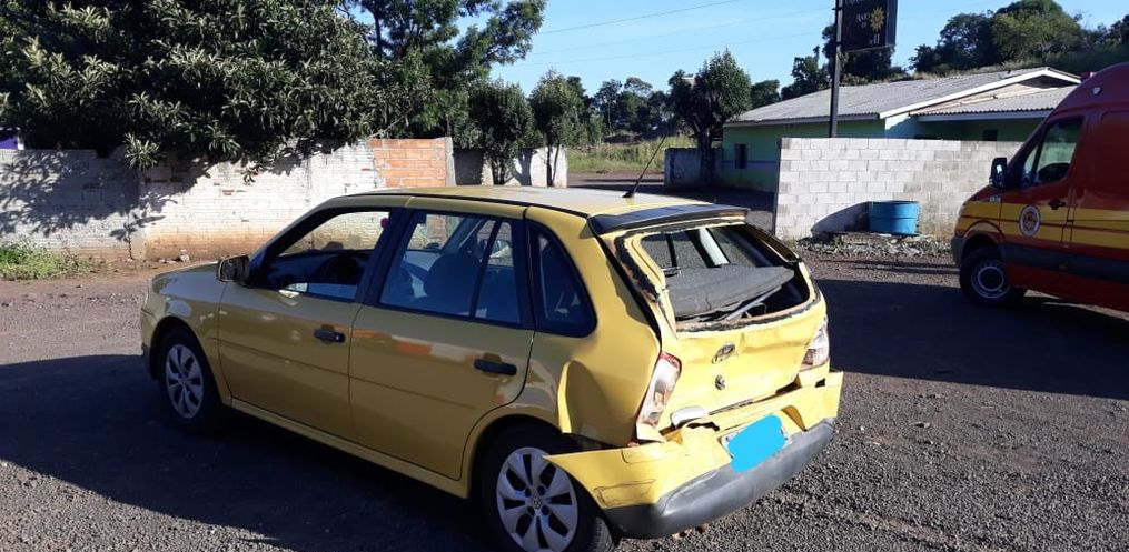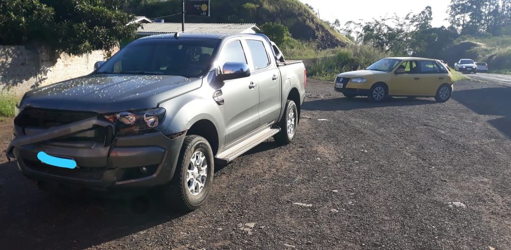 No local constatada uma colisão traseira entre uma Ranger da Argentina e um Gol com placas de Campos Novos.