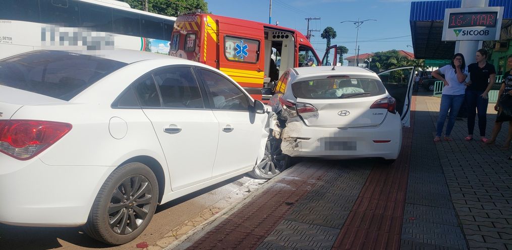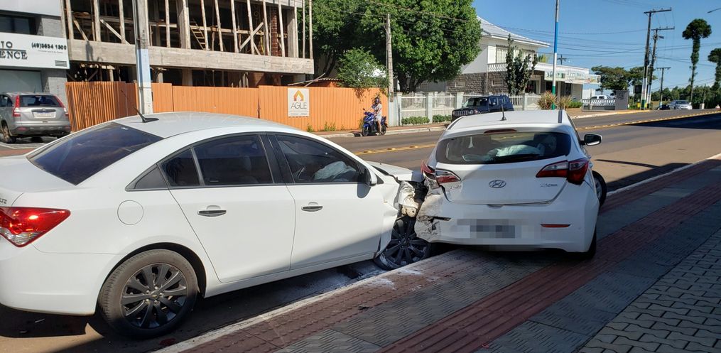 A colisão entre um veículo Hyundai/HB20 com placas de Descanso e um Chevrolet/Cruze com placas de São João do Oeste aconteceu nas proximidades do Sicoob e da Cooperativa A1.