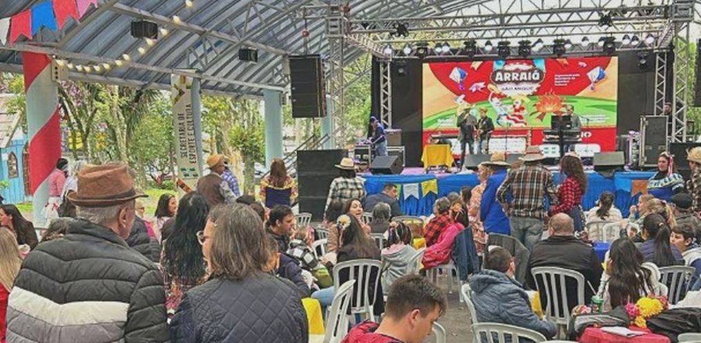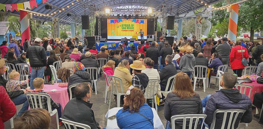 O Arraiá de São Migué reuniu cerca de 400 pessoas na área coberta da Praça Walnir Bottaro Daniel, no centro de São Miguel do Oeste, na tarde deste sábado, 14. O evento teve início com apresentações artísticas e contou com a participação de diversas entidades e escolas da rede municipal de ensino.