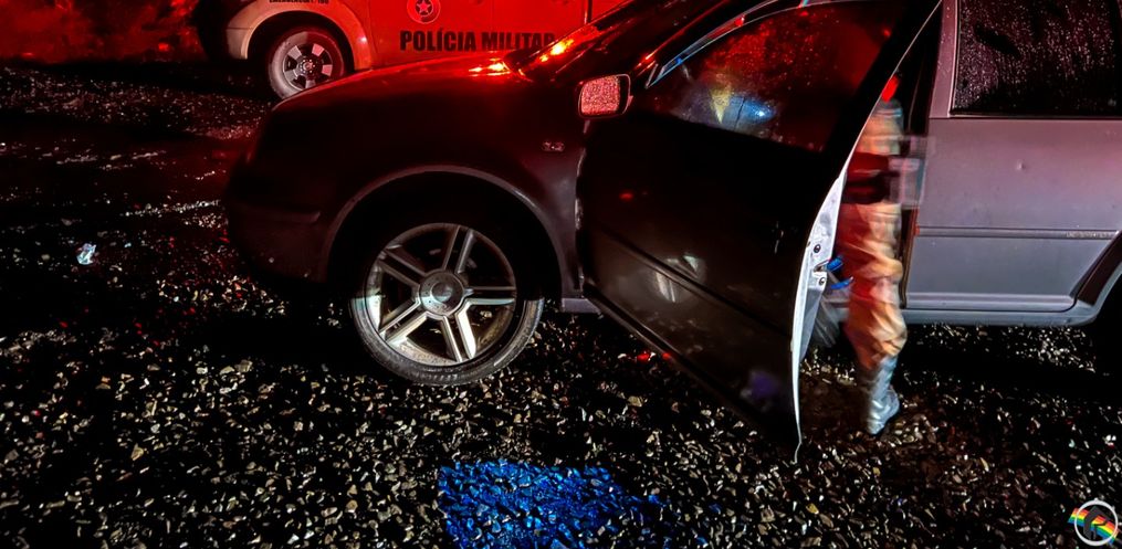 Diante da situação, foi acionado o Canil do 11º BPM/Fron que aplicou o cão de faro no veículo, sendo que foi indicado pelo cão odor de droga na parte central do veículo, no console, possivelmente onde o entorpecente teria sido colocado antes.