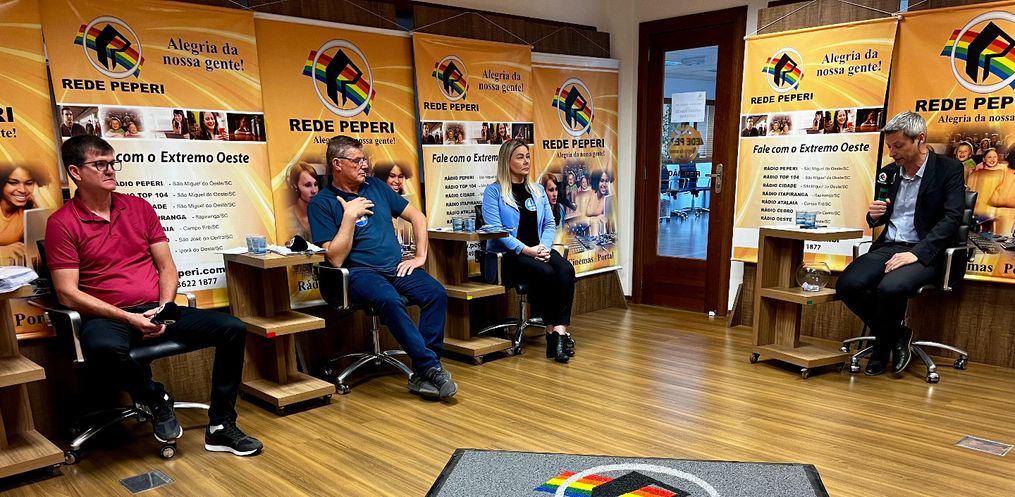 Encaram os microfones da Rádio Peperi FM 99,9 o candidato da coligação Bandeirante em novo rumo, PL-MDB, Davenir Hoffmeister, o candidato da coligação Unidos por Bandeirante cada vez melhor, PSB / Federação Brasil da Esperança - FE BRASIL(PT/PC do B/PV), Eder Marcon, e a candidata da coligação Mudança de Verdade, União-PP, Jane Ries.
