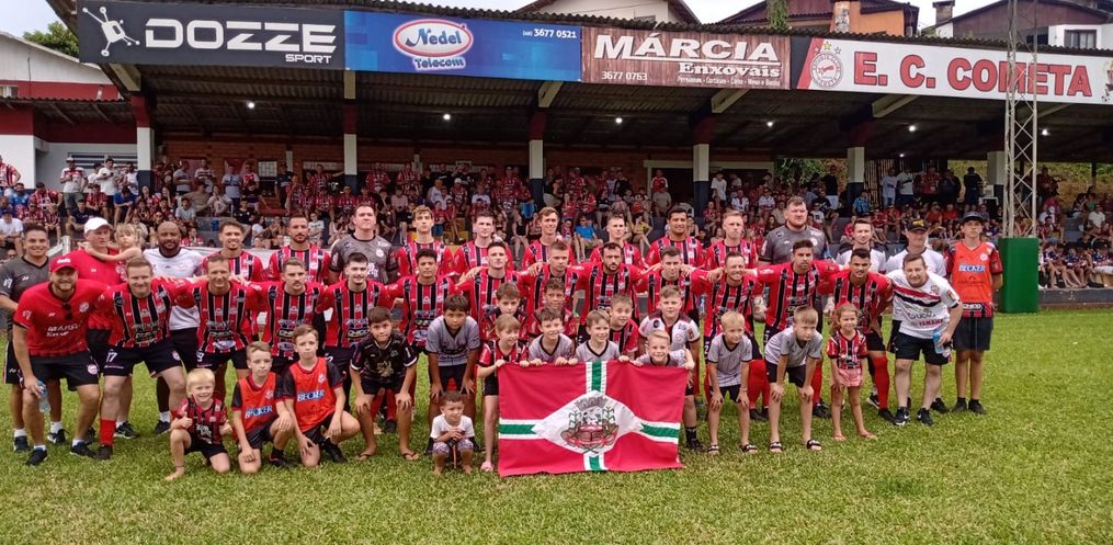 Neste domingo, 19, no Estádio da Montanha, em Itapiranga, o Cometa goleou o Grêmio Ipanema, de Mondaí, por 6x1.