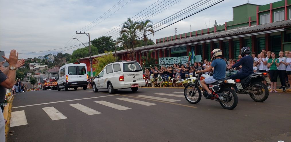 Populares aplaudiram o cortejo em homenagem a Pedro Valdir Gauer, um importante líder comunitário que deixa um grande legado na comunidade iporãoestina. O Corpo de Pedro Gauer foi levado para cremação em Santa Rosa/RS.