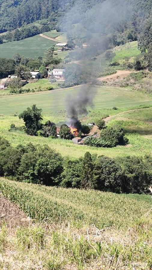 A família de Pedro e Inês Schaab, moradores da comunidade de Vale Pio, recebem apoio após o caso deste domingo, em que a família perdeu a casa com todos os pertences.