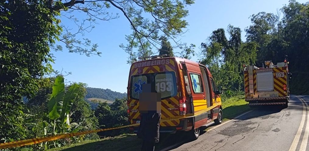 O condutor de um veículo Voyage, com placas de Itapiranga, perdeu o controle do veículo, saiu da pista e desceu uma ribanceira de aproximadamente 15 metros. Em seguida, abandonou o veículo no local e não foi localizado.