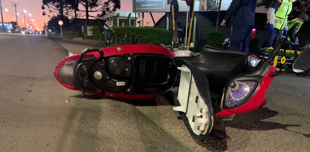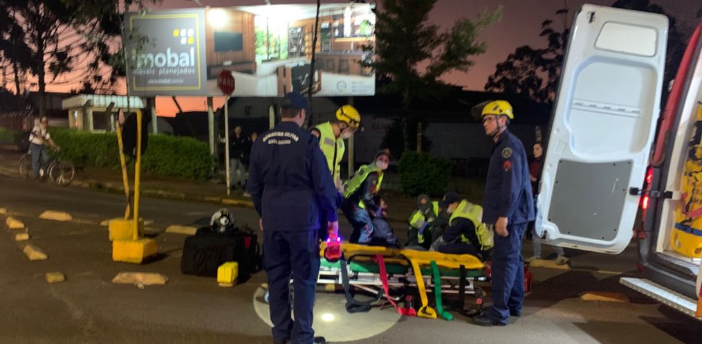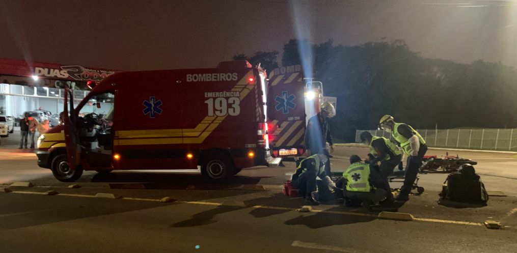 O motociclista sofreu ferimentos leves, foi atendido e encaminhado pelo Corpo de Bombeiros ao Hospital Regional.
