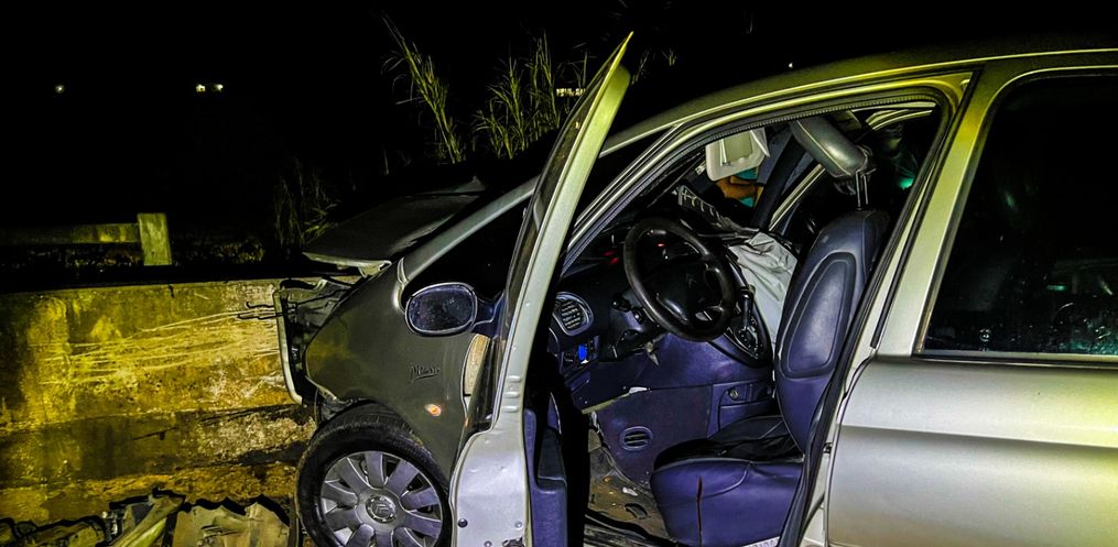 Neste acidente, um homem que conduzia um Citroën Picasso, acabou perdendo o controle de direção e colidiu na cabeceira de uma ponte, localizada no local. Com o impacto, além do dano de grande monta no veículo, o motorista sofreu ferimentos.