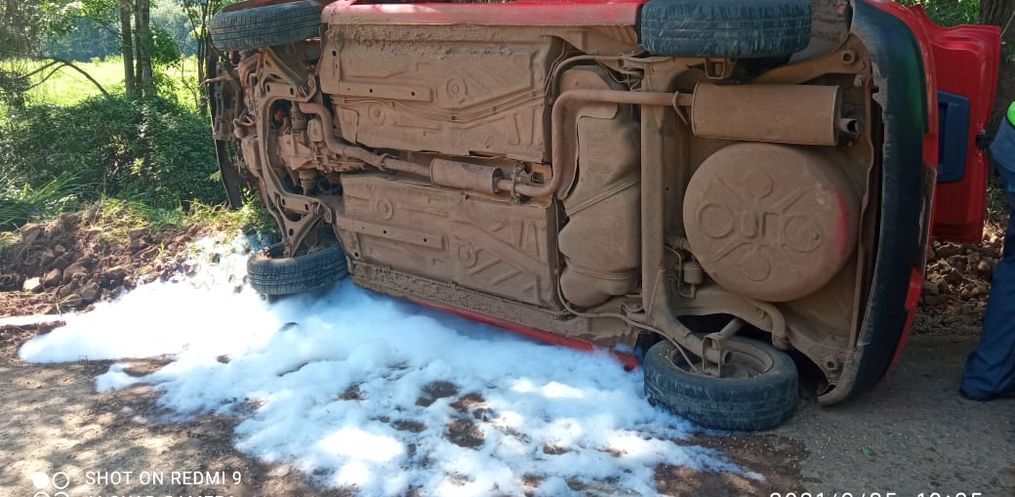 O carro apresentava vazamento de combustível. O Corpo de Bombeiros foi acionado e aplicou uma camada de espuma para evitar que o veículo pegasse fogo.