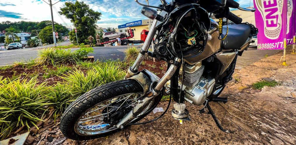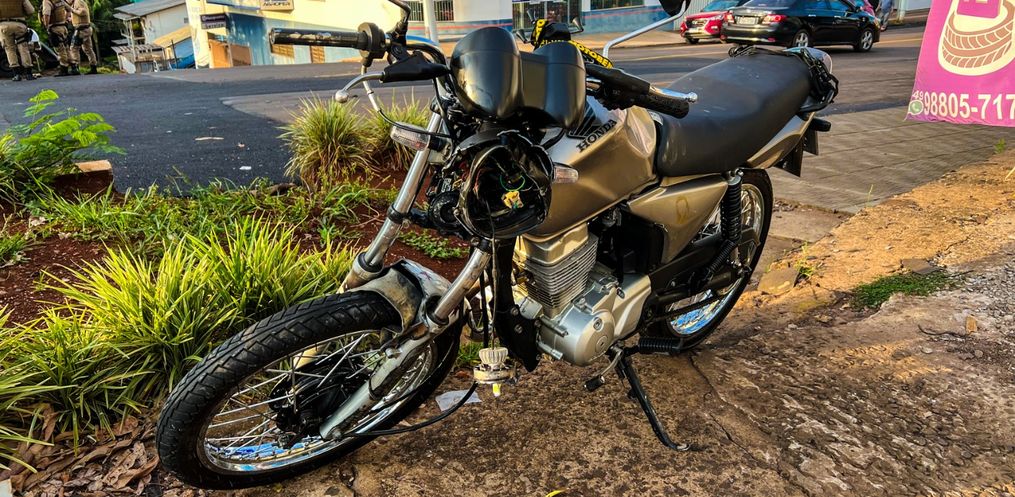 O jovem que conduzia uma CG com placa de Pinhalzinho, teve ferimentos considerados graves e foi levado ao Hospital Regional.