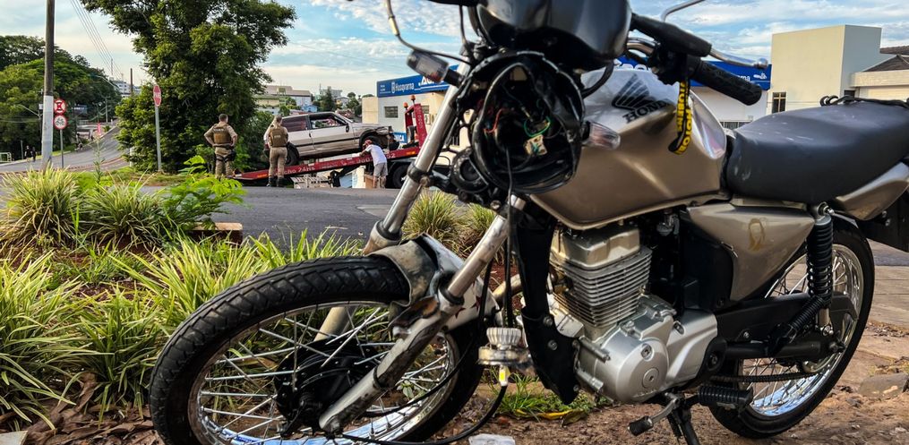 O acidente foi registrado por volta das 06h deste sábado, 10, no cruzamento das ruas Waldemar Ramgrab com a Guanabara, em São Miguel do Oeste.