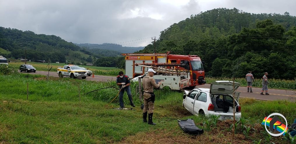 As guarnições do Corpo de Bombeiros de Iporã do Oeste e Mondaí foram acionadas por funcionários de uma empresa terceirizada da Celesc, que passavam no local e viram o veículo fora da pista. A jovem apresentava ferimentos no rosto, dores na região do peito e foi conduzida ao hospital de Mondaí. Ela foi retirada do veículo pelos bombeiros no chamado ângulo zero, ou seja, por meio do corte do banco traseiro do carro e retirada pelo porta malas, para evitar maiores lesões.