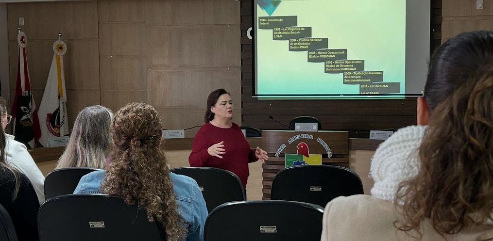 A capacitação foi conduzida pela palestrante Iraci de Andrade, Mestra e Doutora em Serviço Social, que compartilhou suas experiências e abordagens voltadas ao fortalecimento das políticas públicas de assistência social.