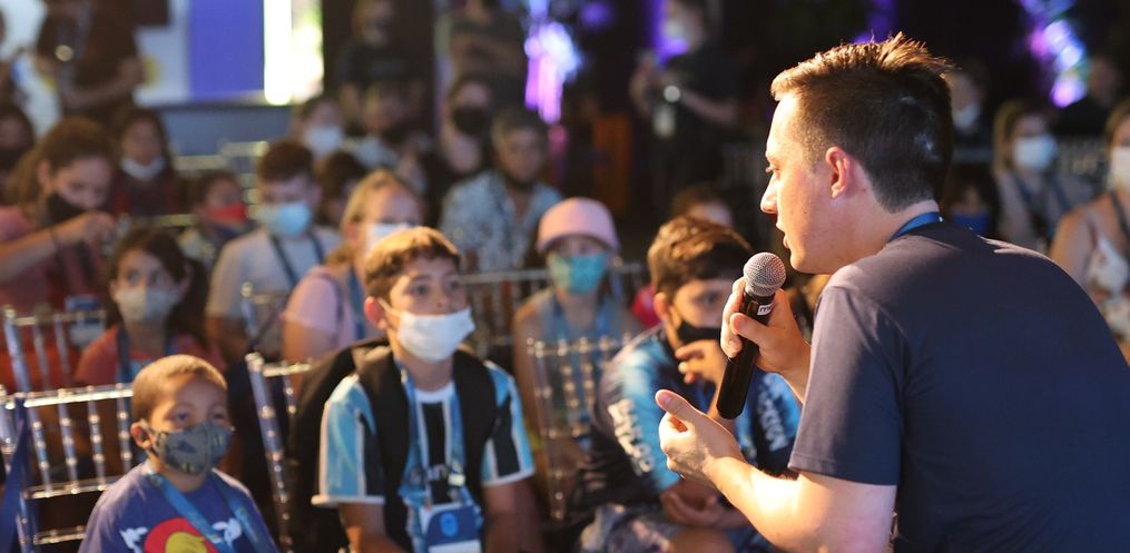 Os pequenos foram recepcionados e credenciados pela equipe da organização e viveram a experiência de participarem de um grande evento de empreendedorismo. Toda a infraestrutura de telões, luzes, som, plenária e estandes já estava pronta para recebê-los. A programação iniciou às 13h30.