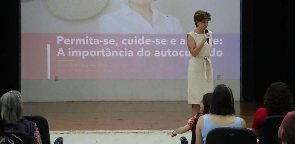 A palestrante foi Sandra Frozza que é psicóloga, e debateu com as participantes o tema: “Permita-se, cuide-se e ame-se: a importância do auto cuidado!”.