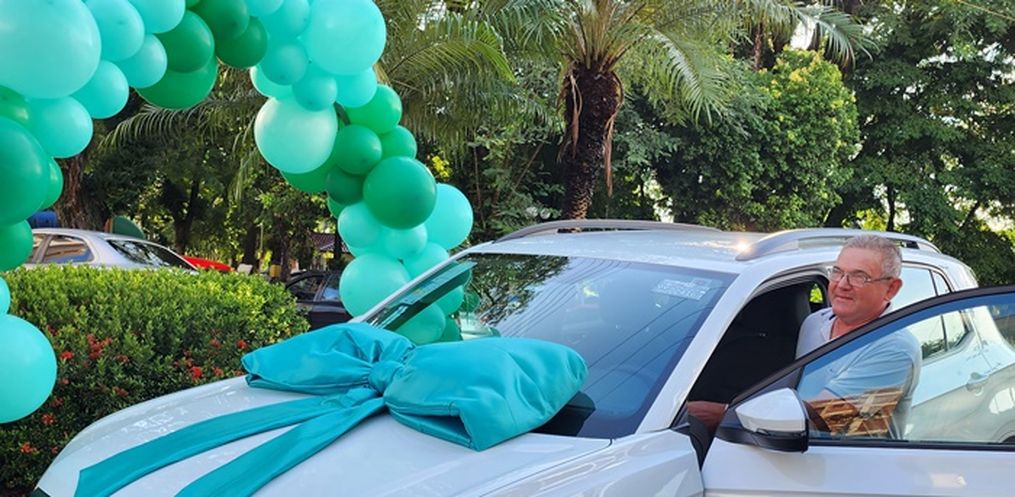 O Sicoob Creditapiranga realizou na manhã desta terça-feira, 19, a entrega oficial de um carro zero quilômetro para o associado Aloísio Babick e família. O cooperado foi premiado com um veículo T-Cross, através da Campanha "Capital Premiado."