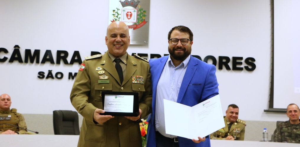 Na noite desta quinta-feira, 12, a Câmara de Vereadores de São Miguel do Oeste promoveu uma cerimônia para entregar o Título de Cidadão Honorário aos Coronéis Jailson Aurélio Franzen e Ricardo Alexandre Sabatini Silva, da Polícia Militar de Santa Catarina (PMSC). A homenagem reconhece a contribuição dos oficiais para a segurança e o desenvolvimento da região.