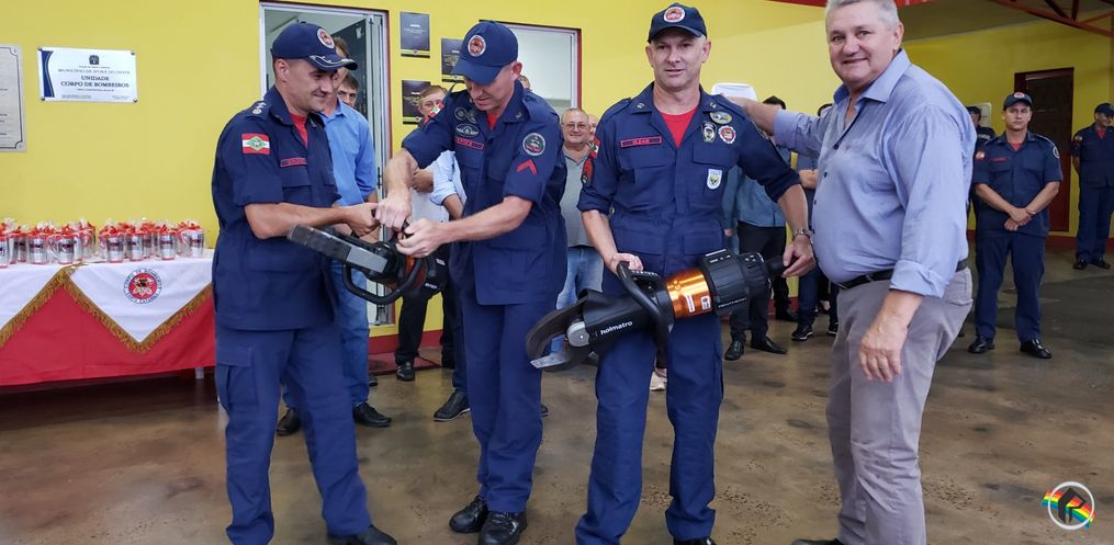 Também teve entrega oficial de ferramentas hidráulicas, promoção de bombeiros comunitários e homenagens a ex-comandantes e ex-presidentes da associação.