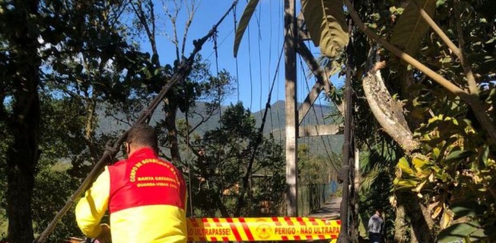 Ao tentar atravessar de motocicleta uma ponte pênsil de pedestres, durante a passagem do evento climático, o homem de 53 anos acabou caindo nas águas do Rio Tijucas.