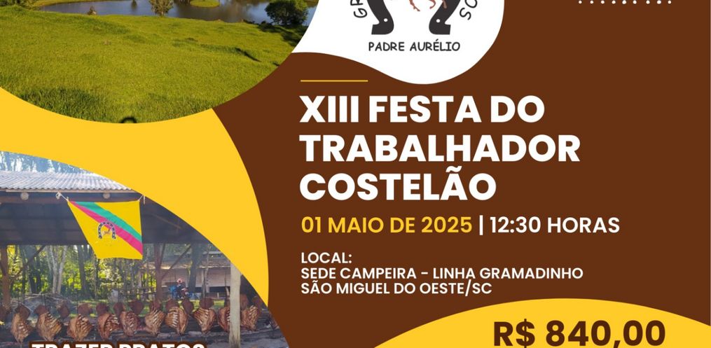 O tradicional Costelão do Dia do Trabalhador já tem data marcada será no dia 1º de maio, na sede campeira na Linha Gramadinho, em São Miguel do Oeste. A organização é do Grupo de Cavalarianos, que comemora mais uma edição com casa cheia.