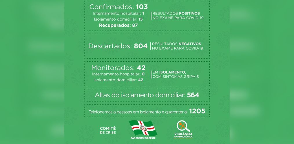 Todos os resultados do dia foram negativos. Outras oito pessoas (cinco mulheres e três homens), entraram para a lista de recuperados, que já chega a 87 do total de 103 casos confirmados.