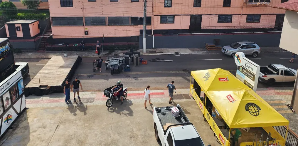 A expectativa para a inauguração do Cine Peperi Itapiranga está cada vez maior. A Rua São Bonifácio foi fechada na tarde desta quinta-feira, 05 para instalação da banda Danúbio Azul e tendas de bebidas e lanches.