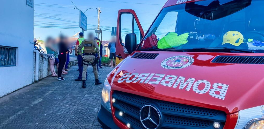 Uma criança de aproximadamente 6 anos caiu de um carro em movimento quando o motorista foi realizar uma conversão em São Miguel do Oeste.