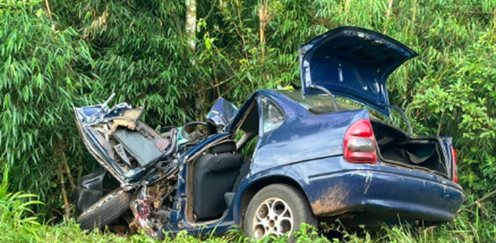 O veículo de passeio, modelo Chevrolet Corsa, ficou bastante danificado às margens da rodovia. Os dois ocupantes do caminhão, que teve danos apenas na parte frontal, não sofreram ferimentos.