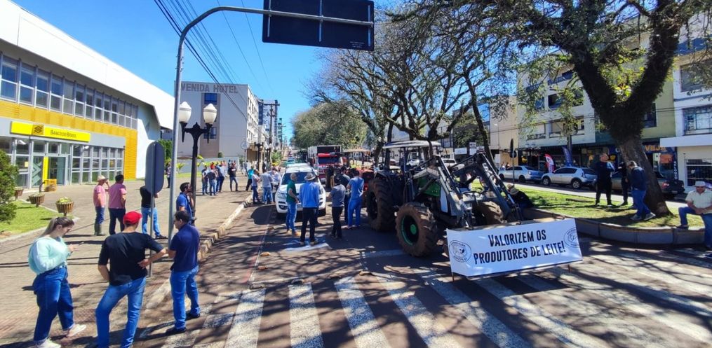 A Sociedade Rural Noroeste, de São Lourenço do Oeste (SC), organizou uma manifestação, no início da tarde desta sexta-feira (15), para mobilizar a sociedade sobre a cadeia do leite e seus produtores. O encontro foi em frente ao Banco do Brasil, na avenida Brasil, e reuniu alguns produtores e empresários.