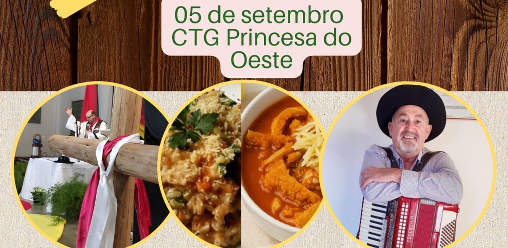 O CTG Princesa do Oeste promove nesta sexta-feira, 5 de setembro, a 7ª edição do Jantar Farroupilha, integrado à programação dos 30 anos de Princesa. A noite tradicionalista terá início às 19h30, com a Missa Crioula, conduzida pelo Padre Marcos Daniel, do Paraná, seguida pelo jantar tradicionalista.