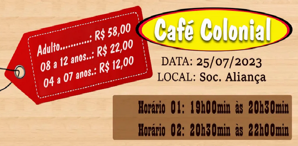 No dia 25, ocorre o tradicional Café Colonial, na Sociedade Aliança. A integrante da Comissão Organizadora da Semana Alemã, Fabiana Welchen, ressalta a facilidade que o público terá com a possibilidade de compra online no site da Semana Alemã. Ela menciona um cardápio variado valorizando as comidas típicas da região. Entre itens doces, salgados, frios, chás e sucos terá um total de mais de 50 variedades. Segundo Fabiana, a procura tem sido grande a cada ano e a comissão tem a preocupação de atender bem os frequentadores.