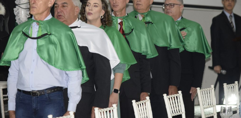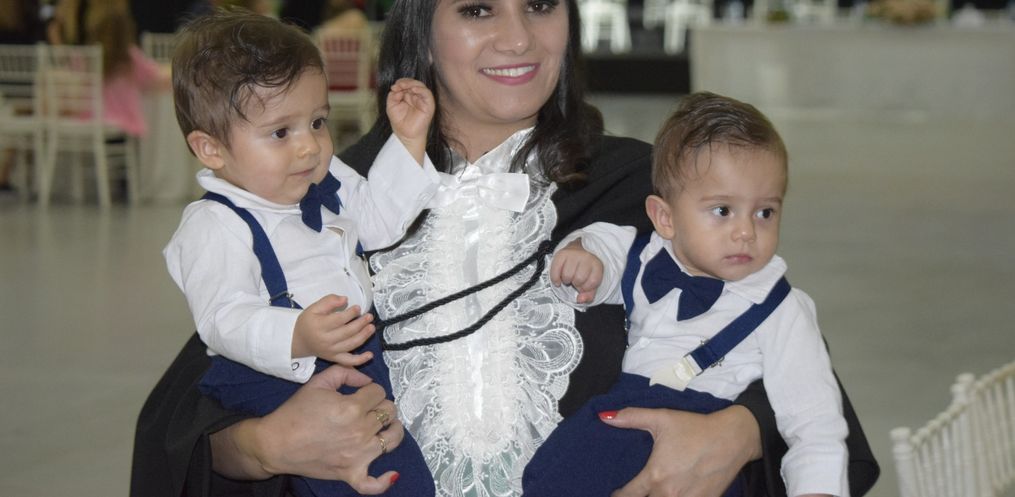 Ismaira Idaiane de Souza Secchi, de 29 anos, recebeu o diploma e apontou para a mesa onde estavam a sogra, o esposo e os dois filhos. Os gêmeos Bernardo e Eduardo de 9 meses nasceram durante o curso. "Foi mais uma motivação para continuar e concluir os estudos", disse. Ismaira contou que decidiu fazer o curso em Agronegócio para ter um aprendizado maior e contribuir mais com a sucessão na família do esposo, Marcelo Perozzo. Eles moram no interior de Campo Erê e trabalham com a produção de leite.