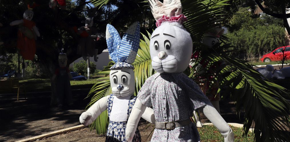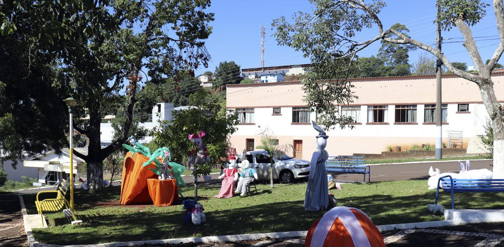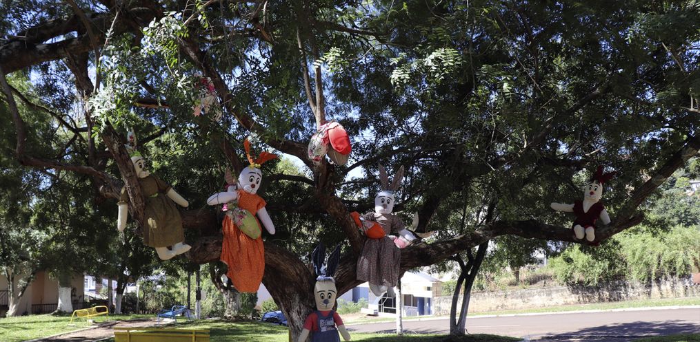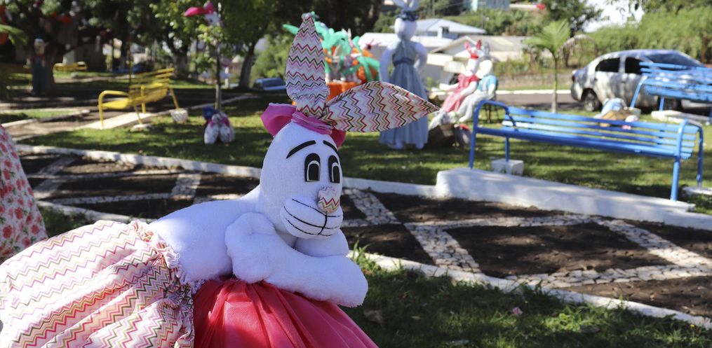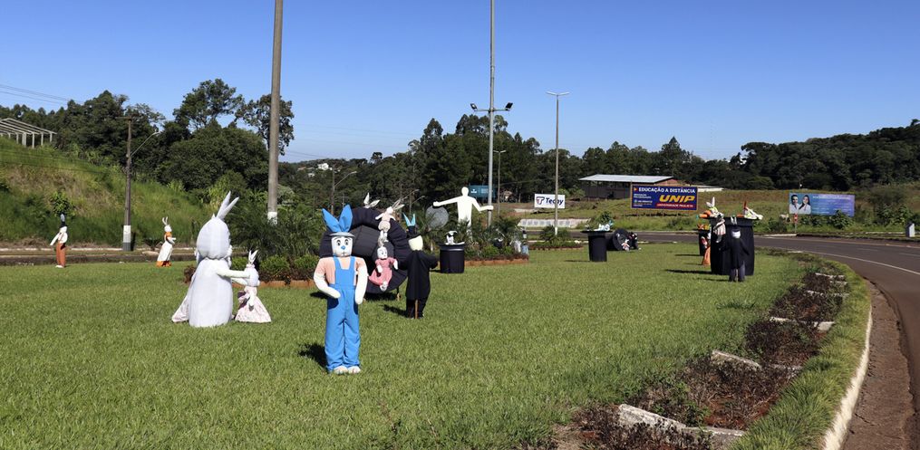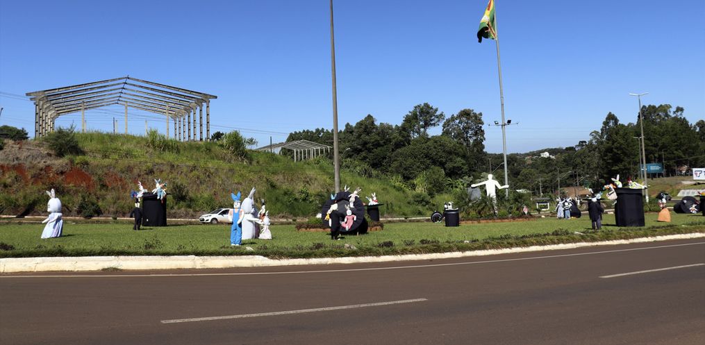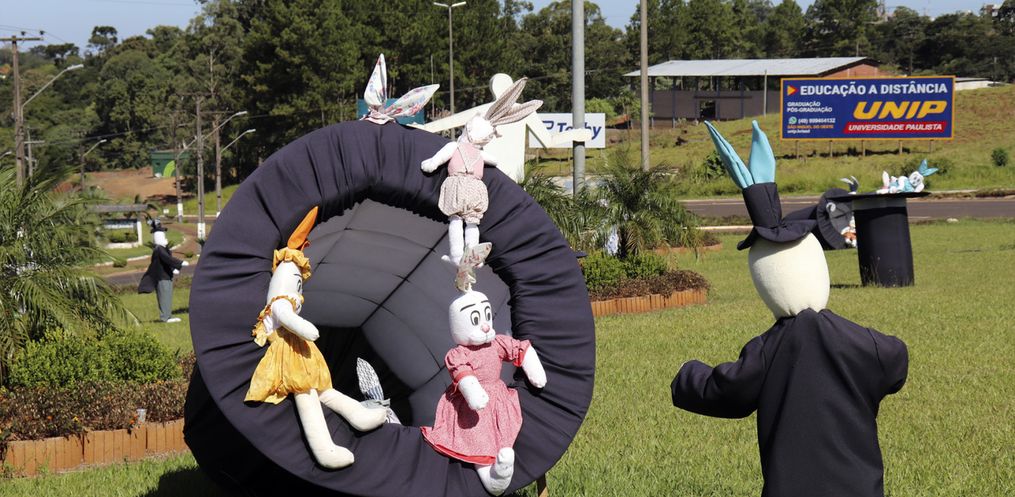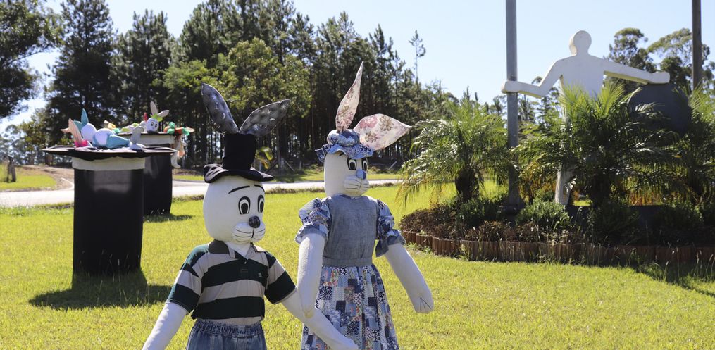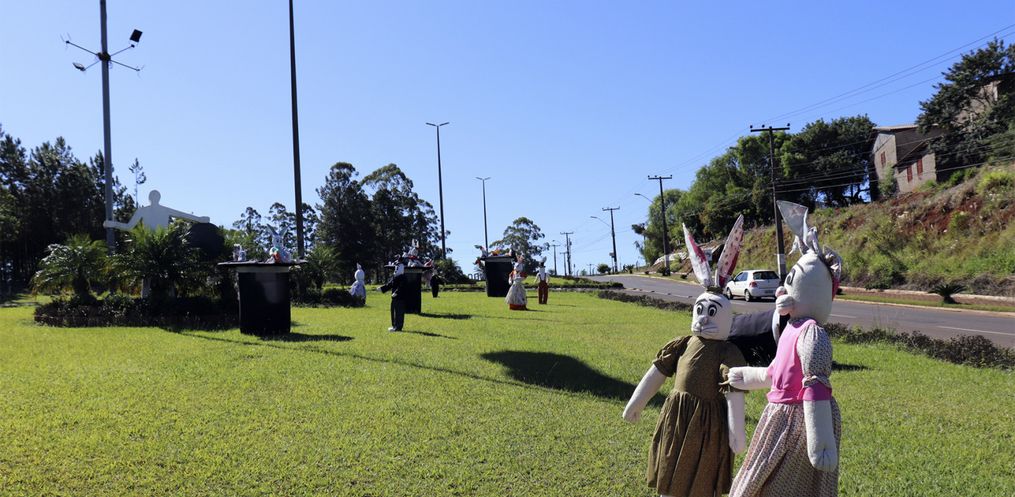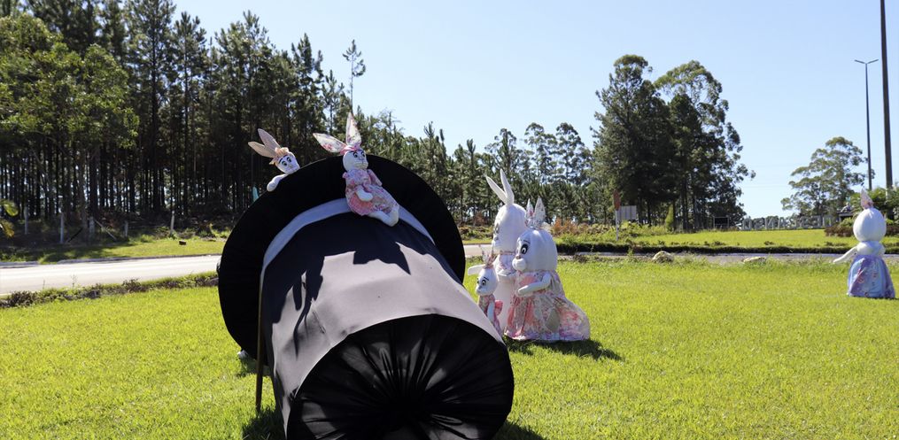 O trevo de acesso à Descanso e a Praça Padre Francisco Massure foram decorados por coelhos e suas cartolas mágicas que têm encantado munícipes e moradores da região.