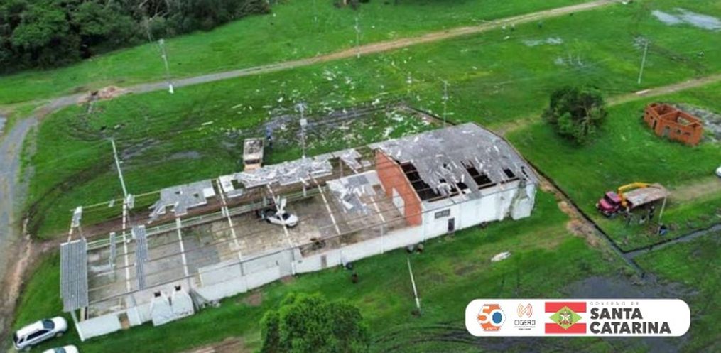 As imagens da Figura 1 mostram a destruição causada pela passagem do fenômeno na região. Os principais danos se referem ao destelhamento parcial e total de residências e galpões, assim como a quebra de árvores.